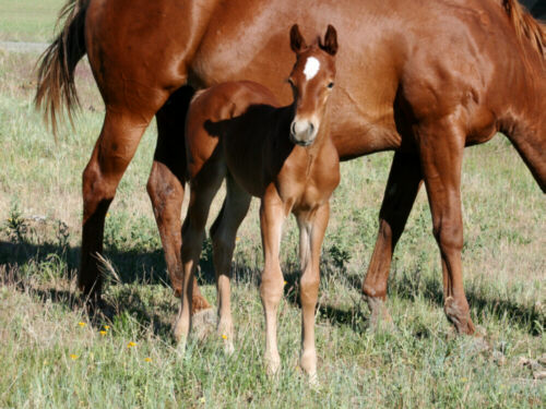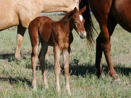 Amandas Dual Pep (Dualin With Cows x Amanda Madoc), 2013 sorrel stud colt. He went to a couple in Custer, SD. Sadly he had to be euthanized due to a pasture accident when he was 2 years old. He will be missed, but left a legacy in form of a beautiful foal behind.