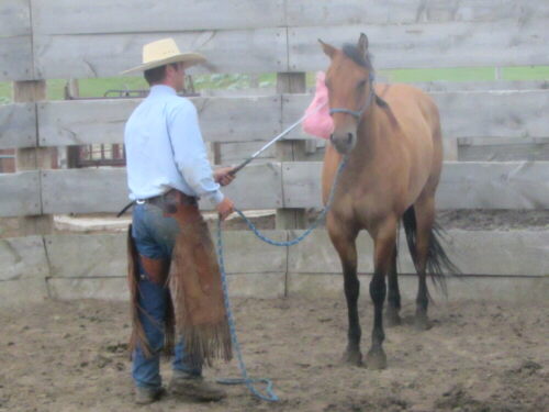 her in the round pen for a refresher. We could catch, desensitize and saddle
