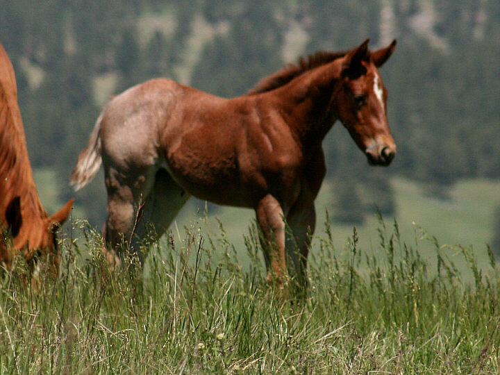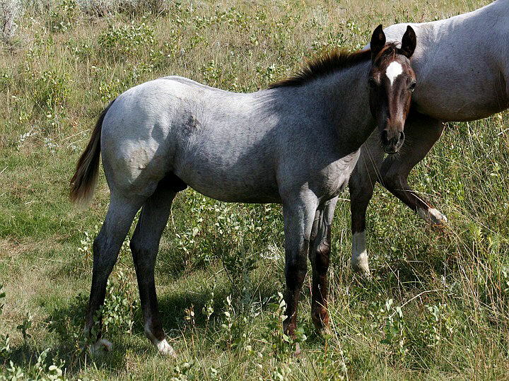The extended family: full and maternal half siblings Peptos Smart Cowboy (Two Timin Shiner x Cowgurl Up Smartie), 2018 chestnut roan stallion