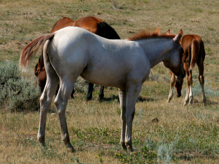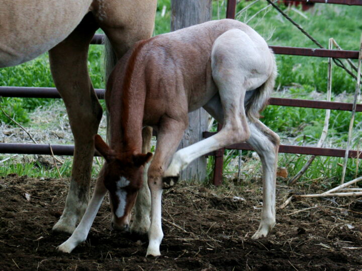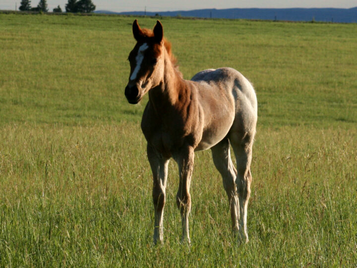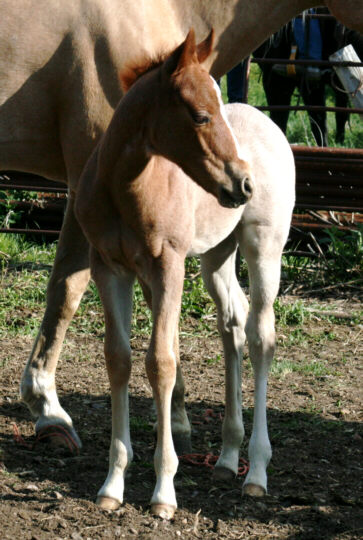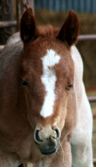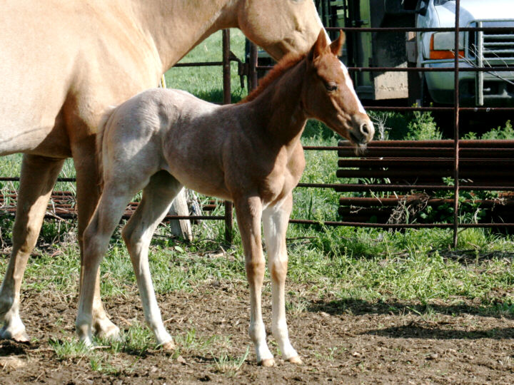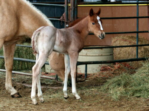 With dam and sire both roan this filly is possibly homozygous for roan.