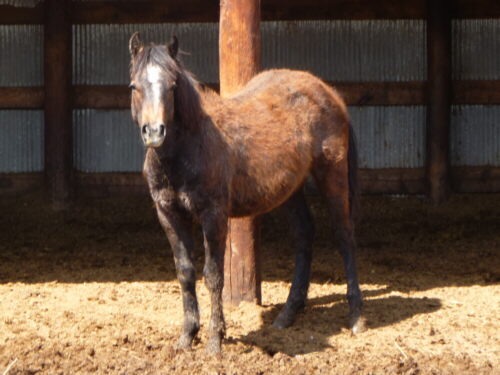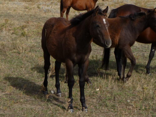 These pictures, taken when he was 5 month old, don't do this colt justice. He was in a very awkward stage of growing, and his mane, not falling on the side of his neck yet, doesn't help his appearance much either.  Please refer to the pictures of his sire, an exceptional pretty buckskin grandson of Paddys Irish Whiskey (full brother of Grays Starlight), to imagine what this colt will grow into.