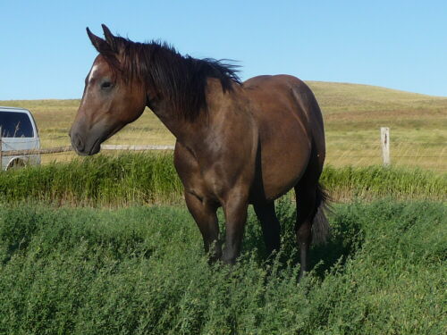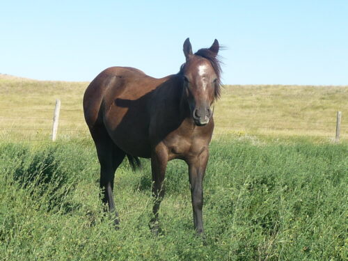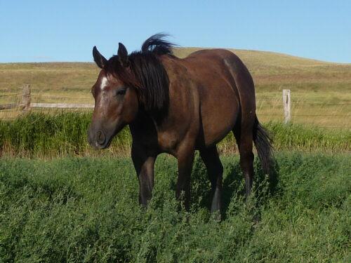 Another well bred stud colt with the makings to eat up a cow on the ranch or in the arena. Thick made he will come after his very stout build sire, Paddysbarman. In his yearling year now he starts to show his selfconfident personality, curious and fearless toward new things and he is comfortable staying by himself even when the rest of the herd decides to take off.