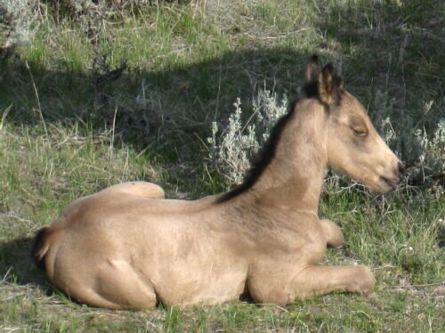 Her 2012 filly is beautifully colored, solid, no markings.