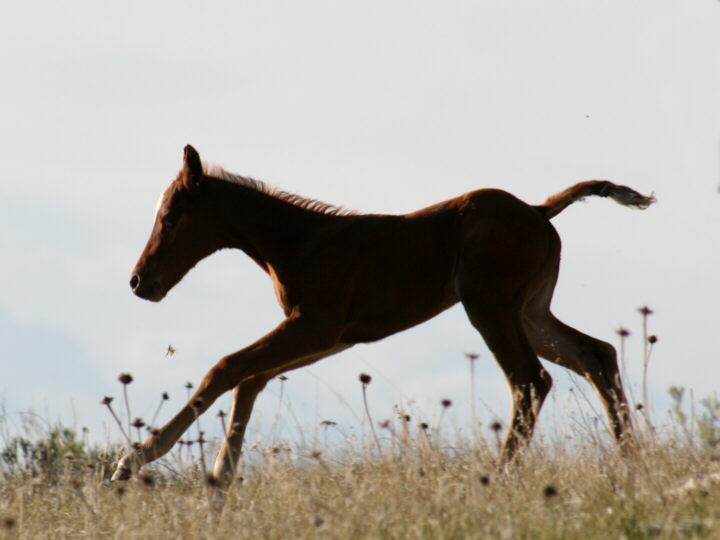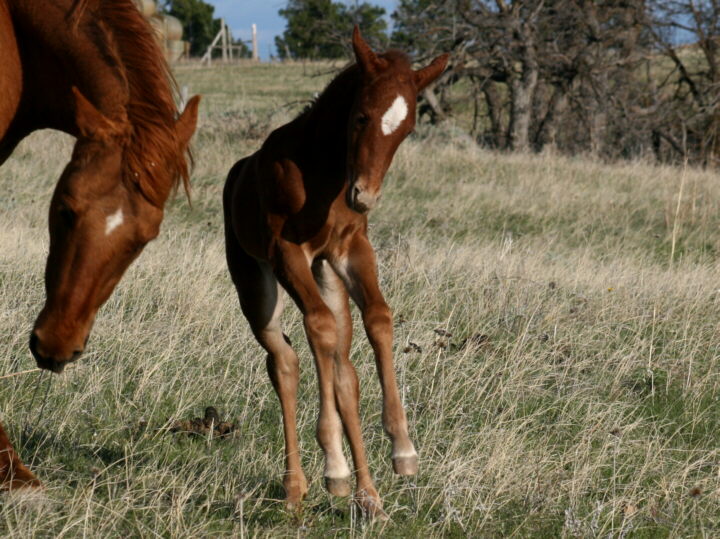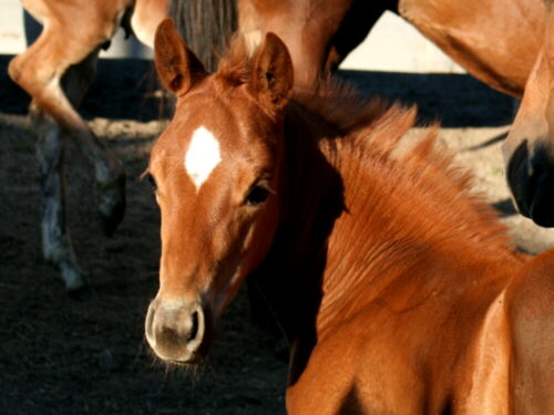 a twin of her 2015 foal, and she sports the same attitude, a curious little