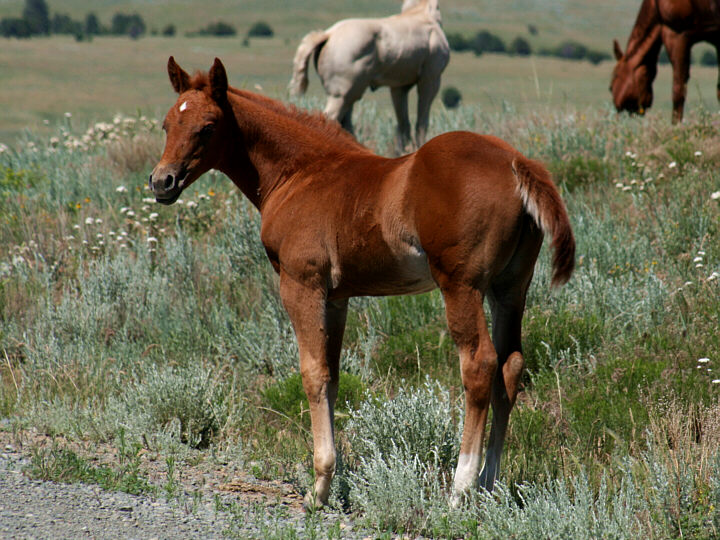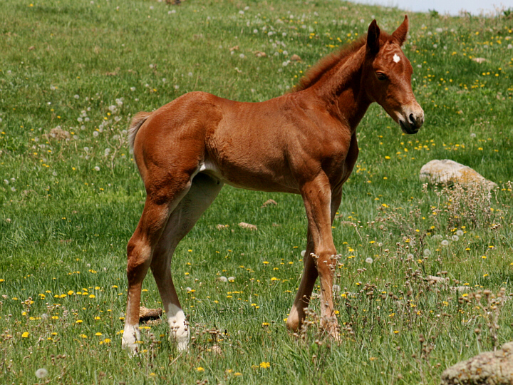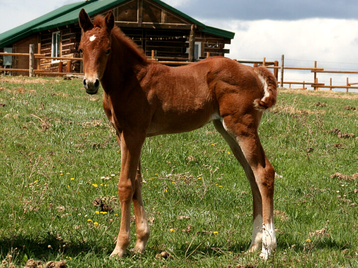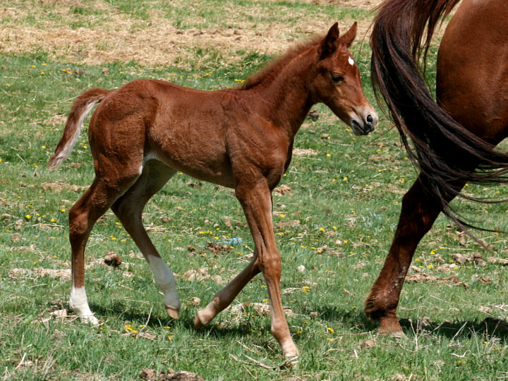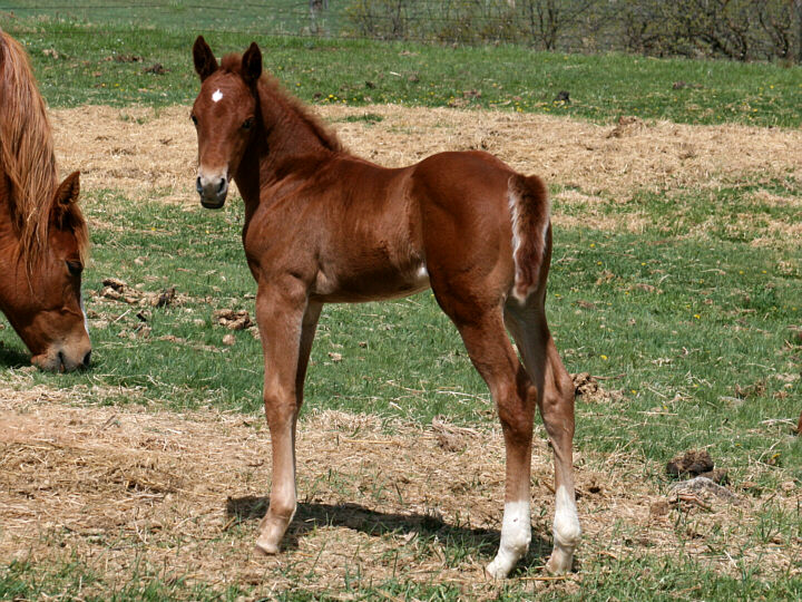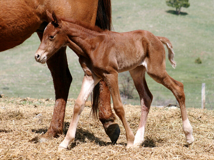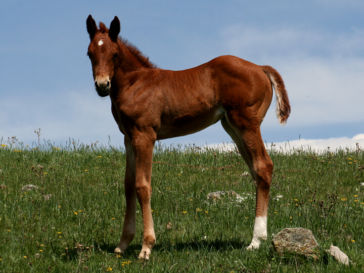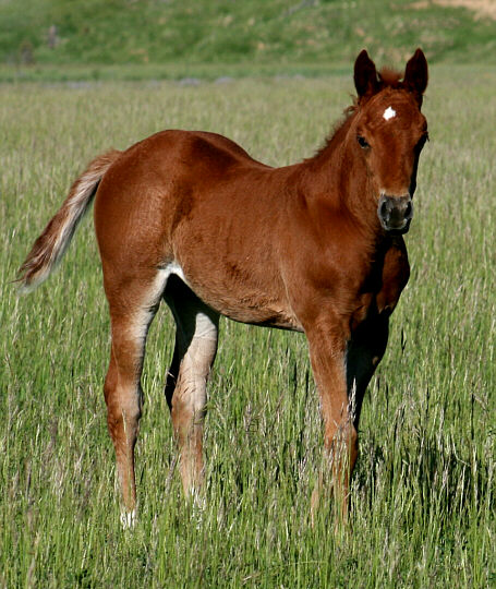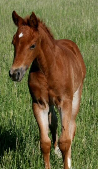 born by Metallic Cat, all legs but straight as a post, now growing up into