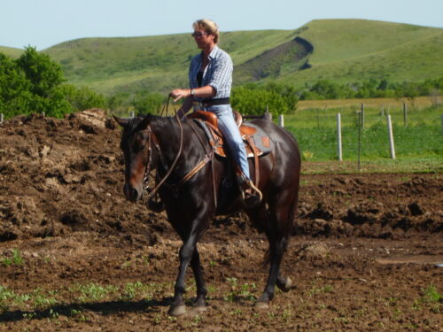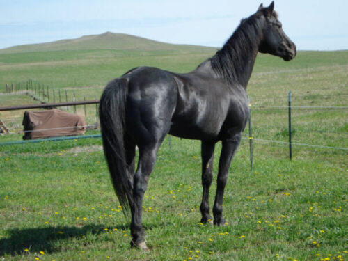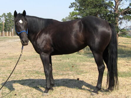 black gelding (Quick Enuf Moon SOS), appr. 16.1 hands tall, stout build,