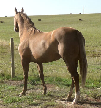 buckskin colored), sire AQHA (Watch Two Twelve), dam Arabian. Born and