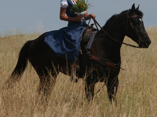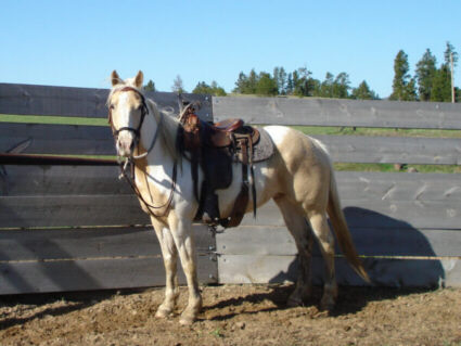 family horse. She'll go on trail rides or work cattle, kids can ride her