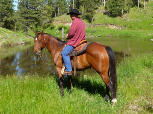 bay gelding (double bred Two Eyed Jack), 15.1 hands. He was used this summer