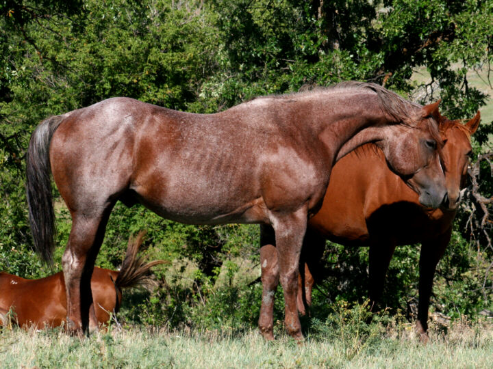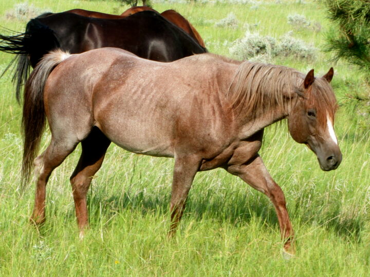 • 50% of his foals were roan (one roan foal deceased due to pasture accident, not pictured).